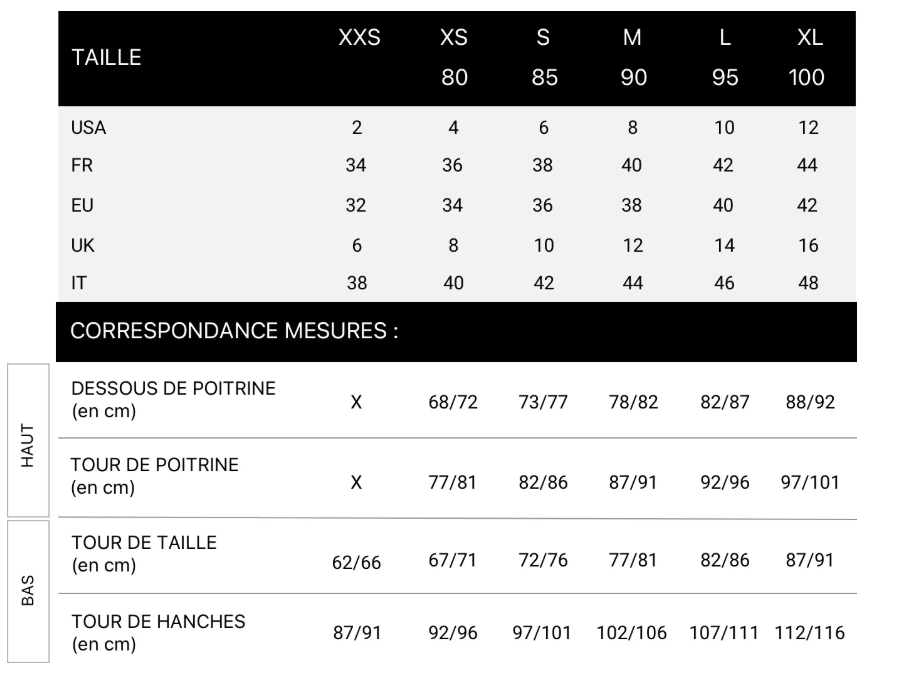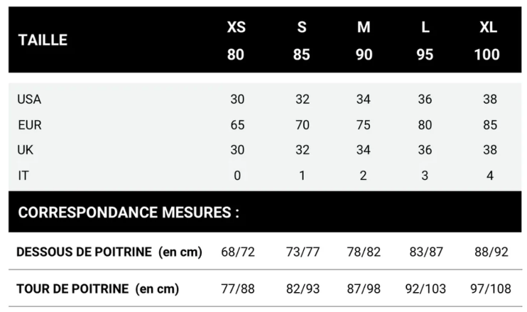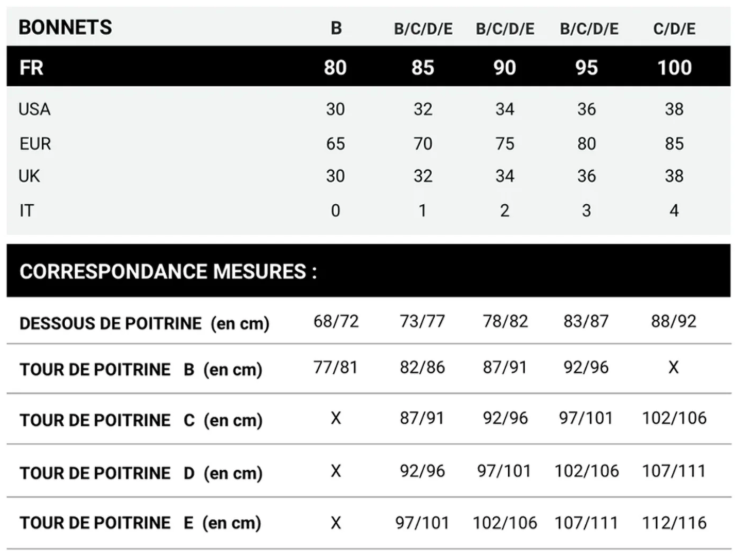Hauts de maillots de bain et soutiens-gorge sans profondeur (en cm)